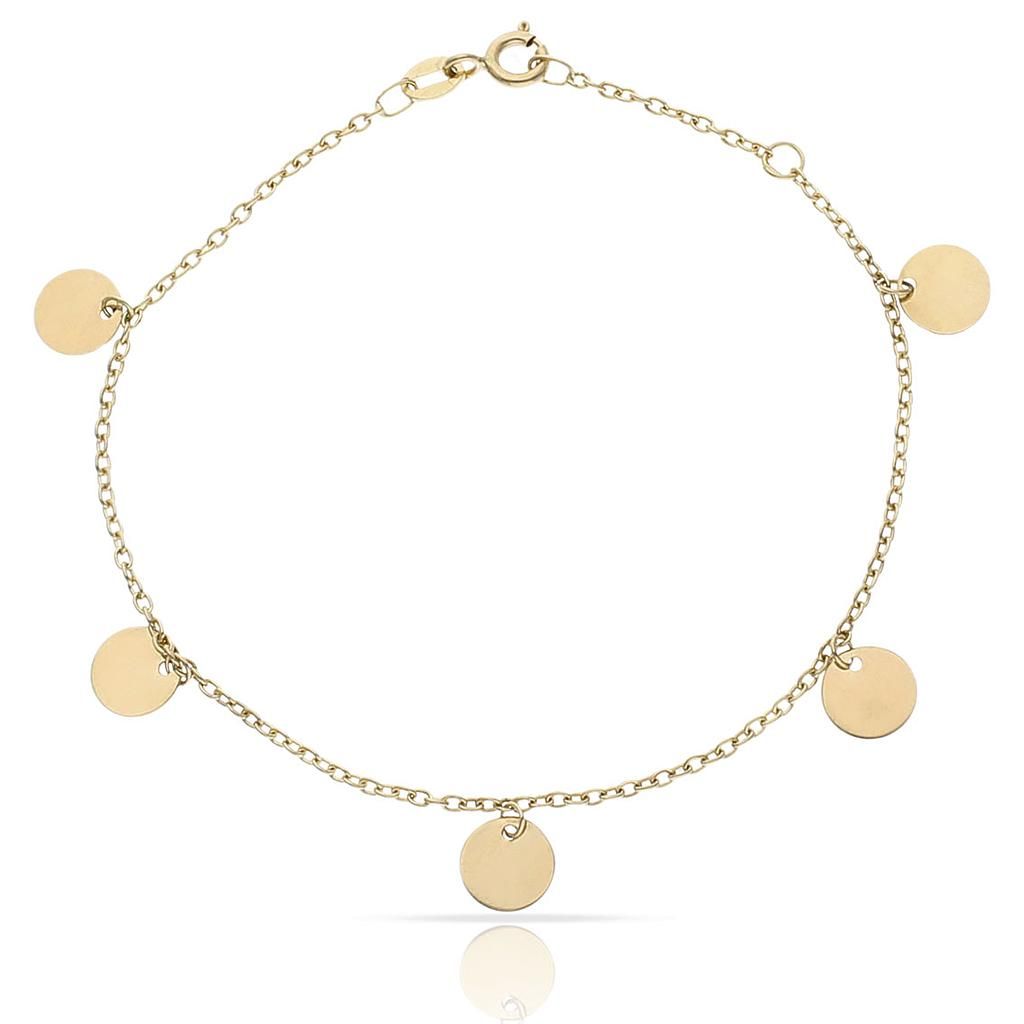 00-1386 Pulsera decorada con cinco mini charms en forma de círculos lisos elaborados en oro de 18 Kilates
