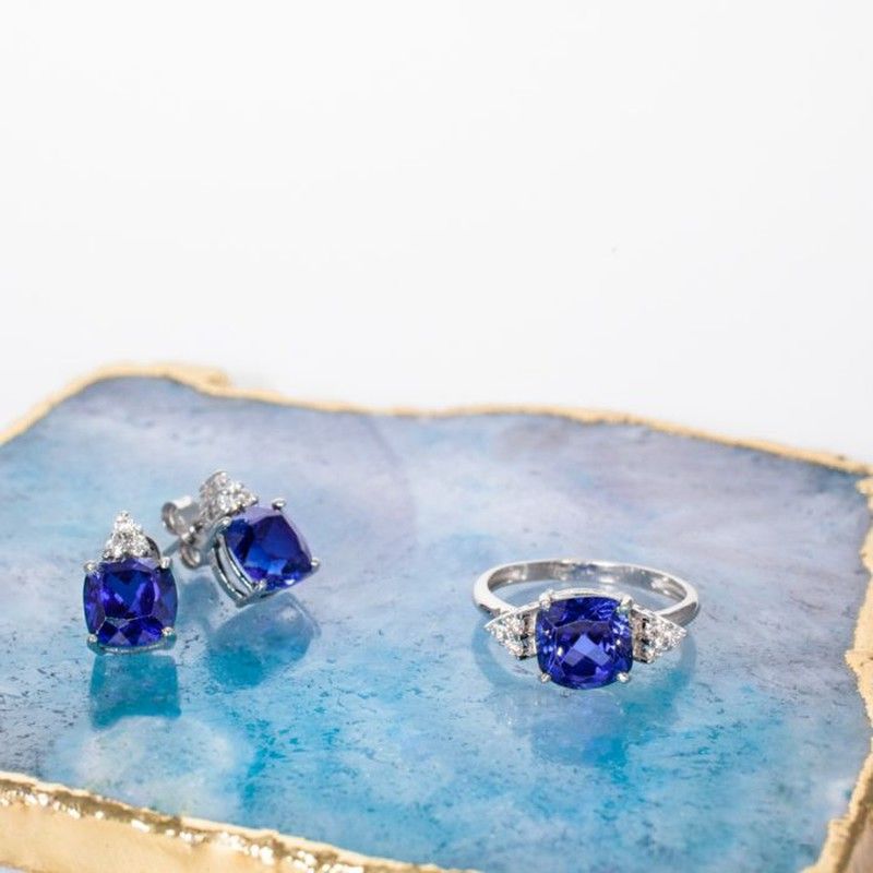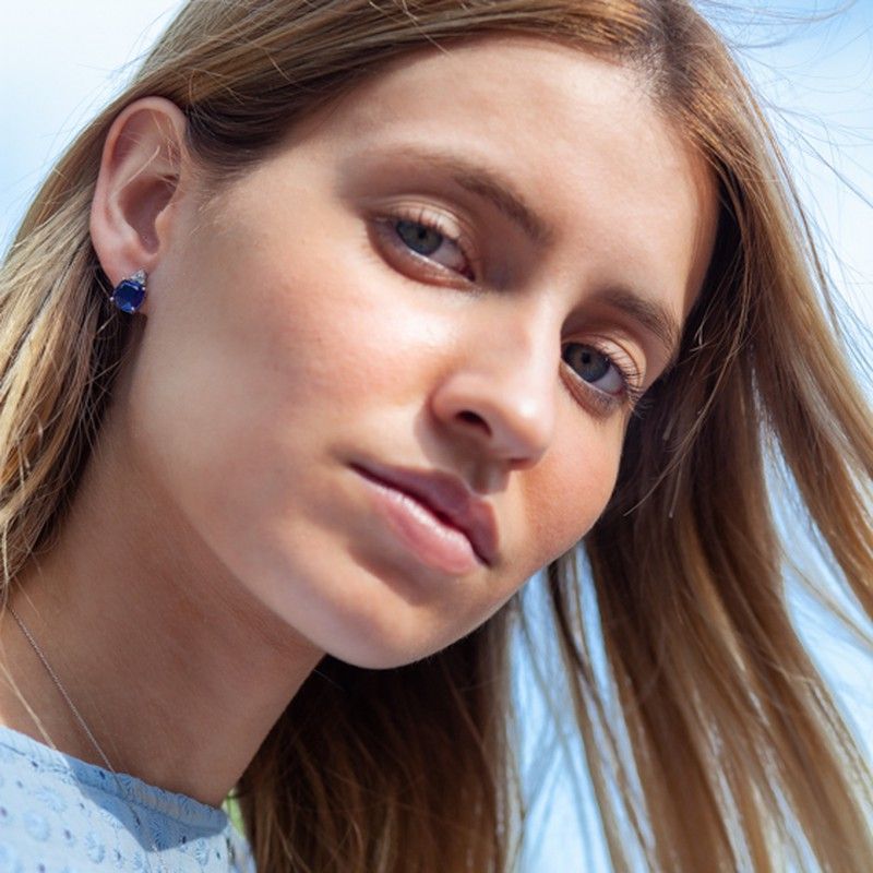 Anillo elaborado a mano para mujer en oro blanco 18k con zafiro natural de 8x8mm y 6 diamantes talla brillante que suman un total de 0,18qq. Selección exclusiva de anillos con zafiro y diamantes montados en oro blanco elaborados artesanalmente. Anillos elaborados a medida, personalizados y grabados para cualquier ocasión. Oro de 18 kilates. La calidad de los diamantes es H-VS. También disponemos de los pendientes a juego. JOYA HECHA A MANO
