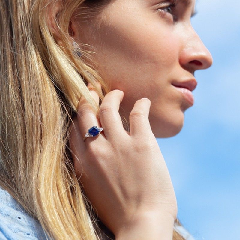 01-001038 Anillo mujer oro blanco 18k diamantes y zafiro