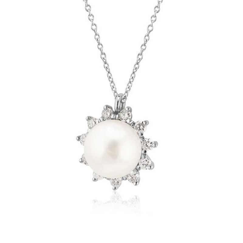 03-183956 Colgante mujer fino y elegante de oro blanco con diamantes y perla cultivada