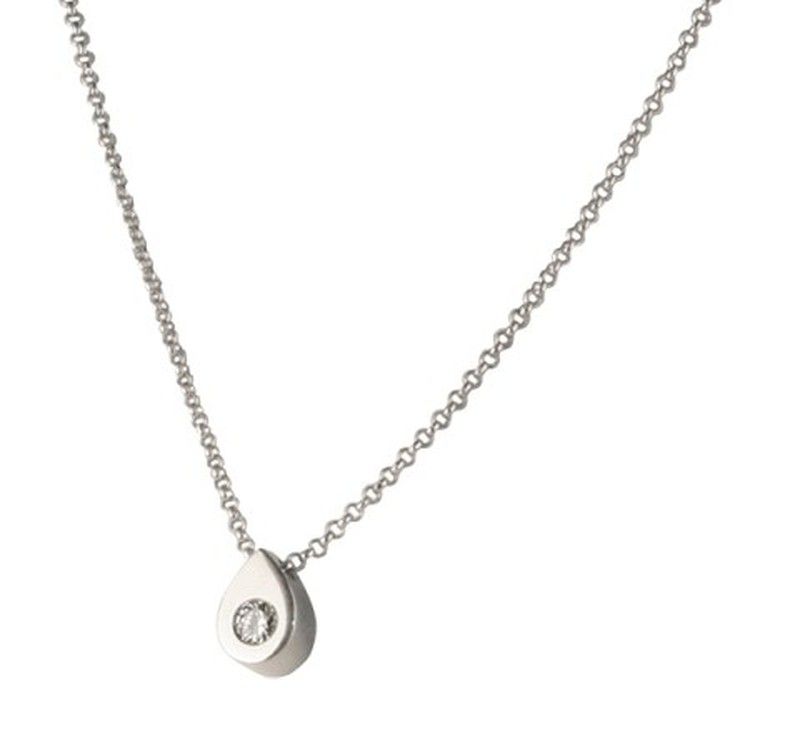 Colgante de mujer en oro blanco y diamante, hay una parte de ti que merece ser vista, y solo la luz y el brillo más potente es capaz de traerla al primer plano. Esta radiante y elegante gargantilla en forma de lágrima que lo adorna un brillante frontal incrustado en el medio del colgante. Ilumina tu cuello largo y esbelto y presume con esta nueva gargantilla de una mirada hipnótica, y para enamorarte un poco más.