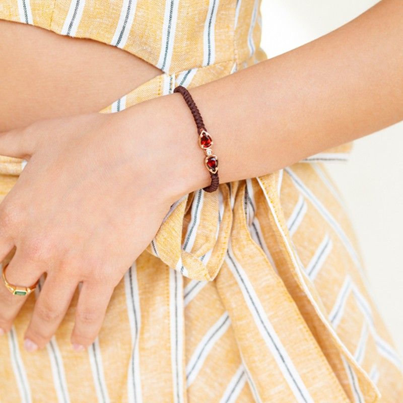 05-001038 Pulsera de mujer oro de ley con piedra de color y diamante central cuerda de macramé autoajustable