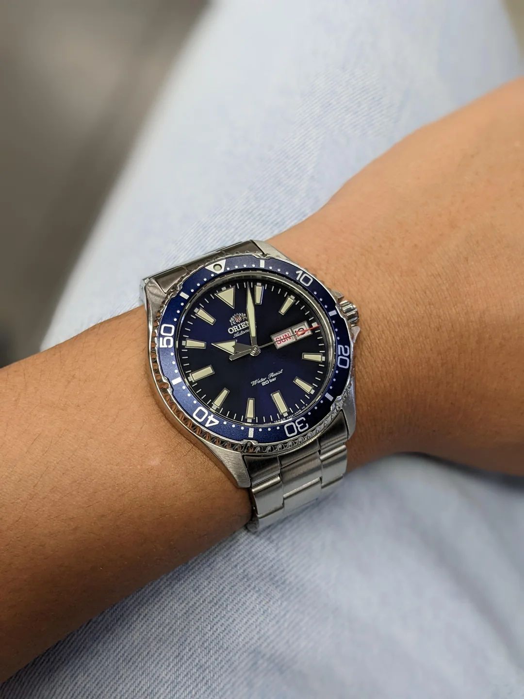 Reloj Orient de hombre automático 147-RA-AA0002L39B esfera azul elegante acuático 200 metros cristal zafiro