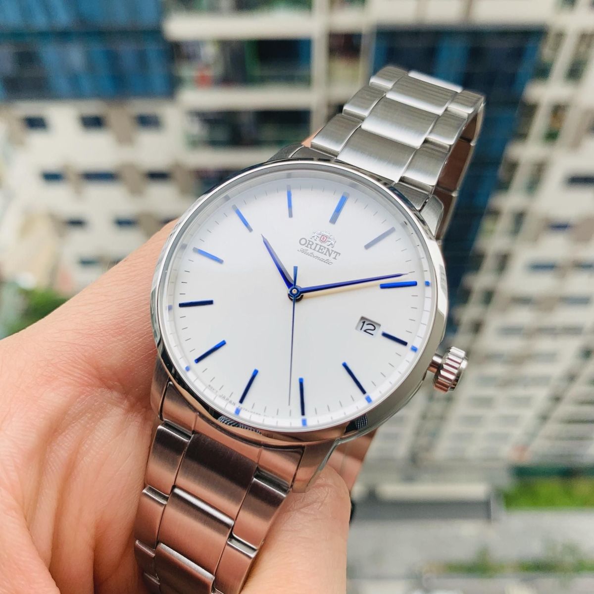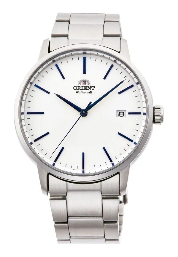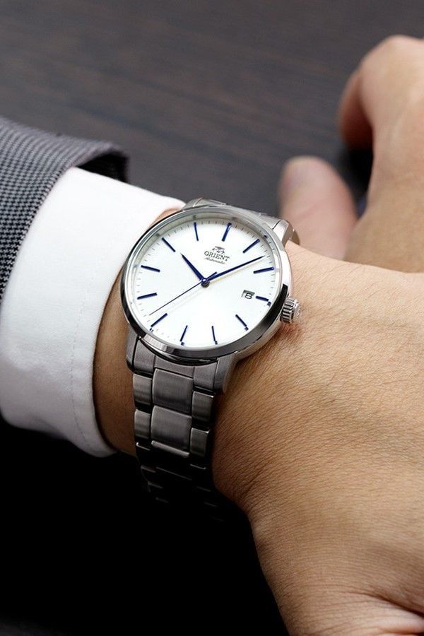 Reloj Orient automático de acero inoxidable 316L para hombre con esfera blanca. Dispone de esfera con todos los números y agujas en color azul destacando muy bien la hora. Empezamos con un modelo imprescindible, el reloj Orient de hombre con esfera blanca con correa y caja de acero, indicador de fecha, agujas y números con revestimiento azul que lo deja muy moderno y elegante. El tamaño de la caja de 39 mm ofrece una proporción justa, ideal para quienes no quieren exagerar cuando hablamos de relojes. Y la resistencia al agua de 100 metros (10atm) está garantizada. Garantía dos años con servicio técnico oficial incluido.