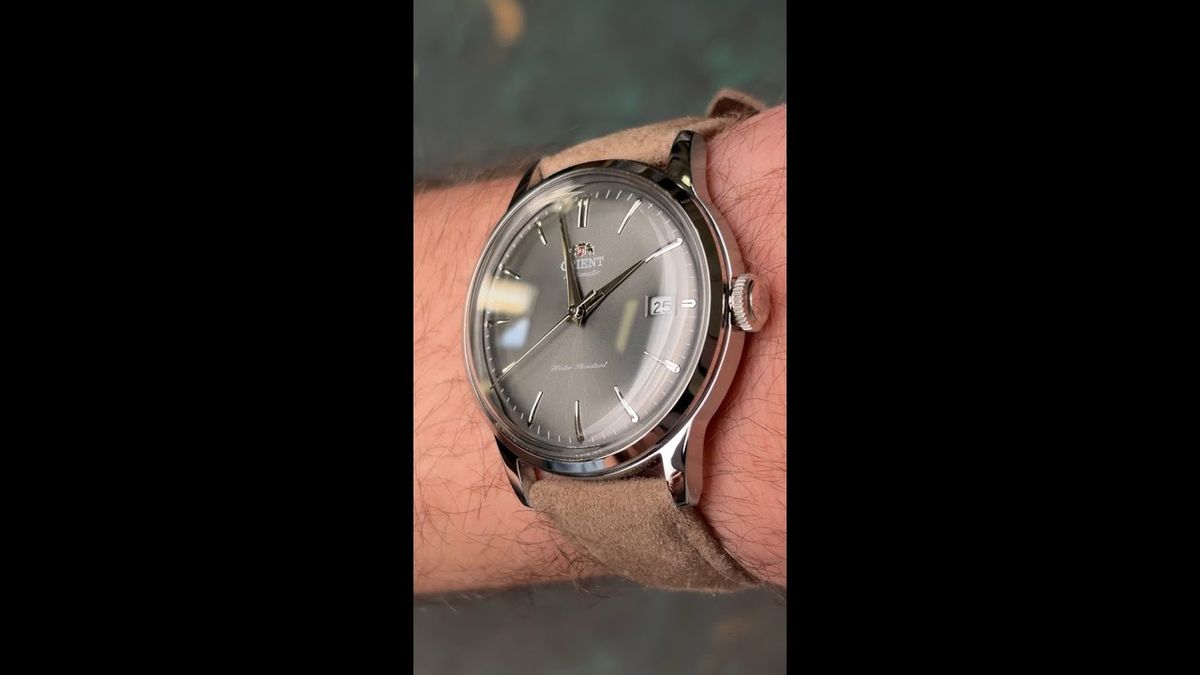 Bonito y elegante reloj de hombre de la marca Orient Bambino con movimiento automático, Orient calibre F6724. Tipo de carga automático y también de cuerda manual. Funciones: Tres agujas, equipado con calendario. Resistencia al agua 30 metros (3atm). Cristal mineral curvo. Corona a presión. Tapa a presión. Correa de piel de buena calidad. Diámetro de la caja 38mm. Grosor de la caja 12.5mm. Color de la esfera gris. Garantía dos años con servicio técnico oficial incluido.
