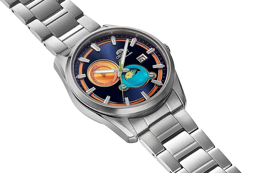 Reloj Orient automático para hombre, están equipados con un movimiento mecánico automático de carga bidireccional con posibilidad de carga manual, que permite dar cuerda completa al reloj en poco tiempo. Orient Stretto Day & Night – modelo primavera-verano 2026 de lanzamiento limitado. Ofrece una precisión estable de entre +25 y –15 segundos al día y una reserva de marcha de 40 horas. Combinado con una resistencia al agua de hasta 5 bar y un cristal de zafiro resistente a los arañazos, se convierte en un reloj perfecto para llevar cómodamente en cualquier ocasión. Además, incluye indicación de fecha y día de la semana. Este modelo destaca especialmente por su audaz combinación cromática. Incorpora detalles como el indicador azul de día y noche a las 4 horas, con motivos de sol y luna; círculos concéntricos en color naranja bajo los índices en forma de cuña y en el subdial del día de la semana situado a las 10 horas; además de una escala de minutos en rosa y un segundero en verde, que lo deja muy moderno y atractivo. Garantía dos años con servicio técnico oficial incluido.
