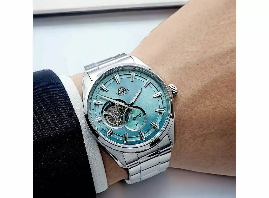 Reloj Orient para hombre esfera azul muy interesante y significativo con movimiento automático calibre F6S22. Tipo de carga automático y cuerda manual. Funcionalidades tres agujas y segundero. Resistencia al agua 50 metros (5atm). Cristal zafiro. Corona a presión. Brazalete y caja elaborado en acero inoxidable 316L. Diámetro de la caja 40.8mm. Grosor de la caja 10.9mm. Color de la esfera verde. Otras características Semi skeleton. Reserva de carga 40H. Garantía dos años con servicio técnico oficial incluido.