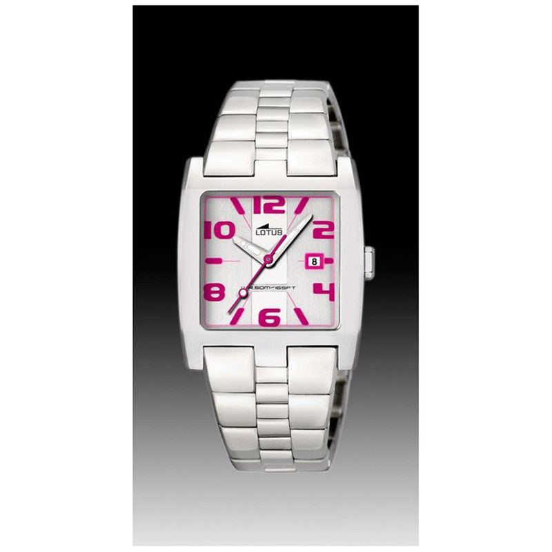 Reloj Lotus para mujer, elaborado en acero inoxidable 316L. La pulsera tiene un ancho de 22 mm y se cierra mediante un cierre de mariposa de seguridad con dos pulsadores. La marca Lotus es conocida por sus diseños exclusivos y de última generación, perfectos para aquellos que buscan un estilo contemporáneo, urbano y moderno. Este reloj es una excelente opción para cualquier ocasión, desde reuniones de negocios hasta eventos sociales.