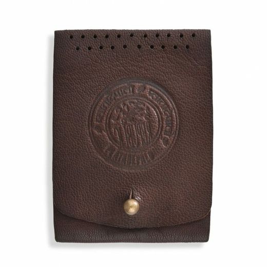 ACC96 Tarjetero Plata de Palo marrón de cuero con botón