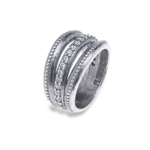 WR099X Anillo Plata de Palo mujer de Plata 925 elaborado a mano con tres aros en plata de 1ª ley 925, destacando el aro central adornado con relucientes circonitas blancas