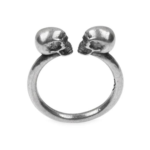 SR027X Anillo unisex Plata de Palo modelo Kizuna con dos calaveras en plata de ley