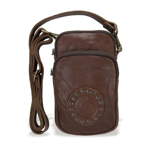 Bolso Bandolera PLATA DE PALO para hombre en piel marrón y dos compartimentos con cremallera . Medidas 19x12 cm. Identificativo en el exterior con el sello de la marca PLATA DE PALO. Super elegante y de buena calidad.