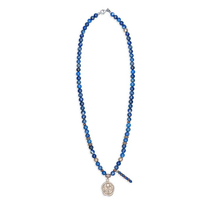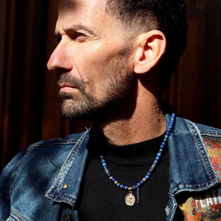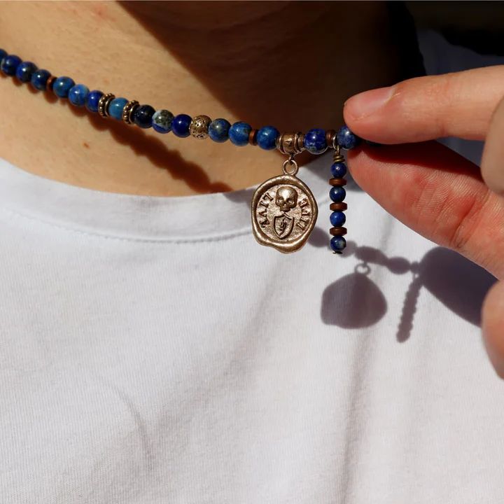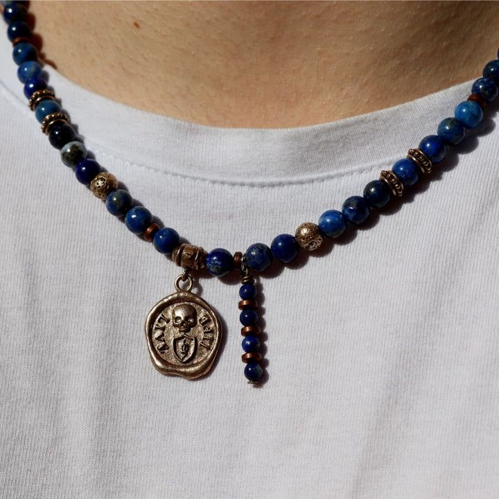 SN050X Collar Plata de Palo hombre calavera modelo Nadir medalla de Lapislázuli, Bronce y Plata 925