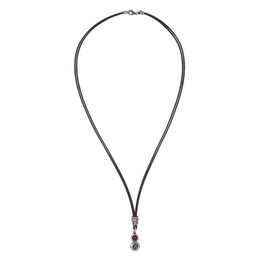 WN250X Collar PLATA DE PALO fino y elegante de cuero mujer Kage lágrima de plata 925 con rubí y amatista