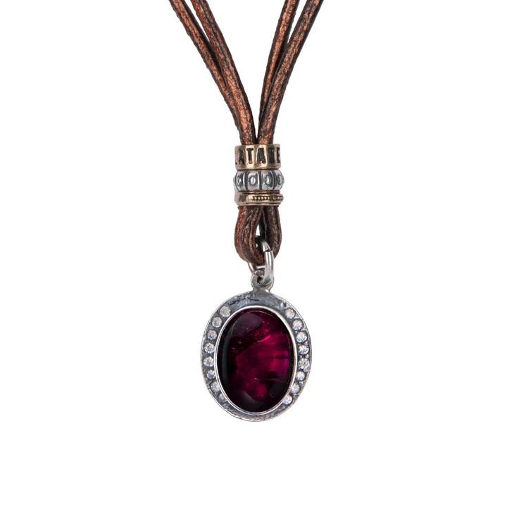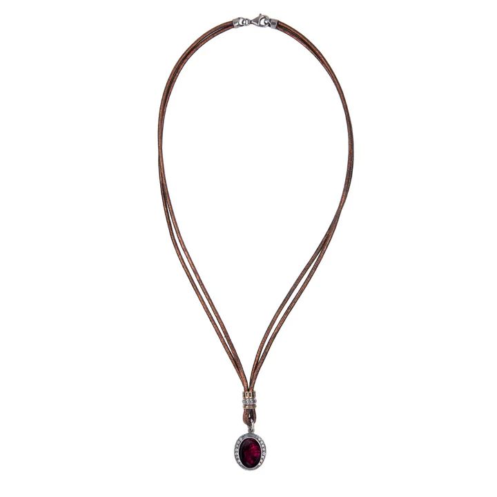 WN265X Collar Plata de Palo refinado de cuero mujer Kurai con de piedra granate y circonitas