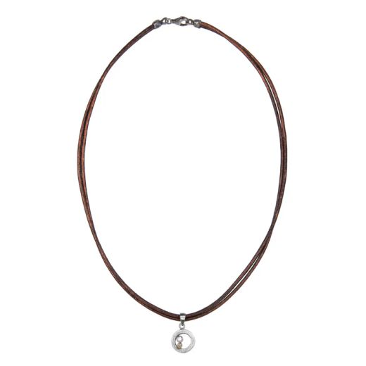 WN253X Collar Plata de Palo mujer de cuero colección ENSO con colgante círculo de plata 925 y un punto de bronce con circonita