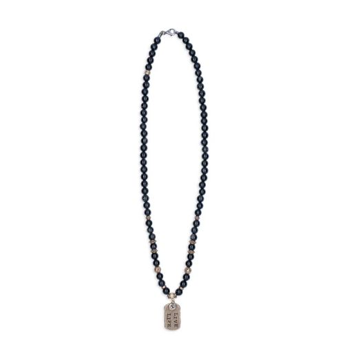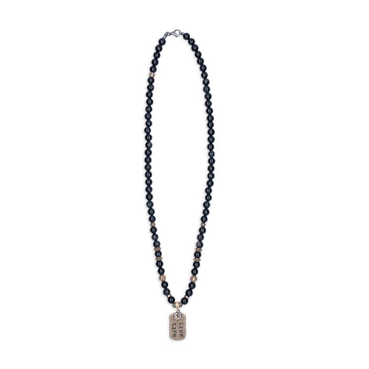 MN032X Collar Plata de Palo de hombre Riad "live life" de Ónix, Bronce y Plata 925