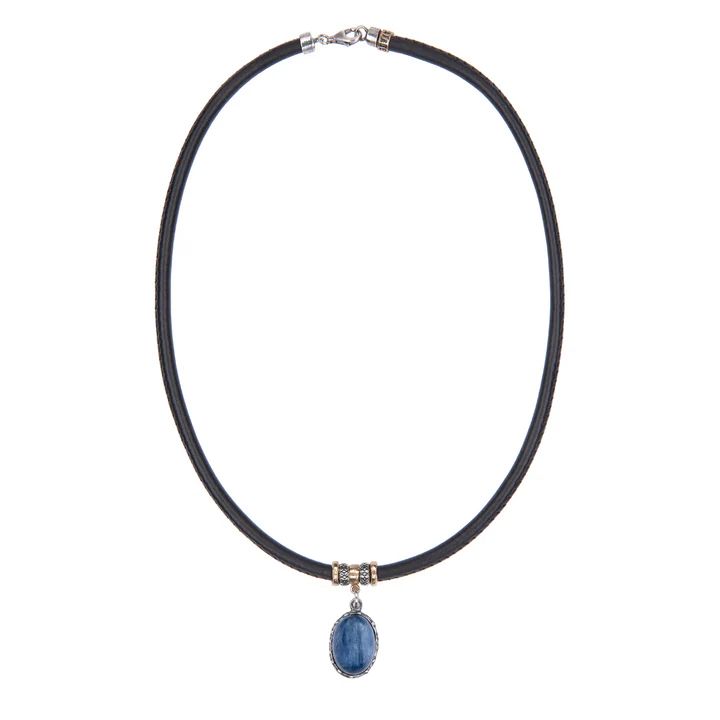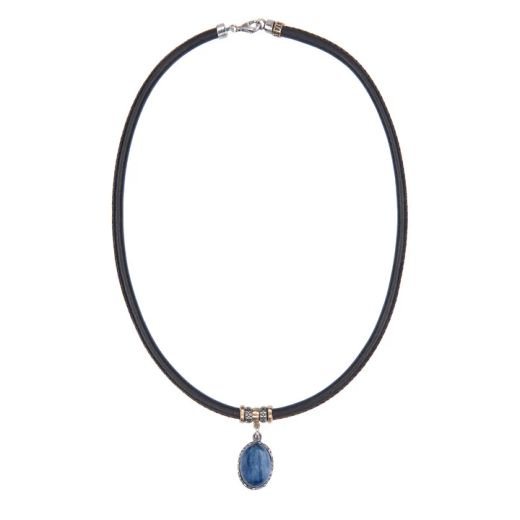 WN256X Collar Plata de Palo extremado mujer de cuero y colgante con piedra cianita