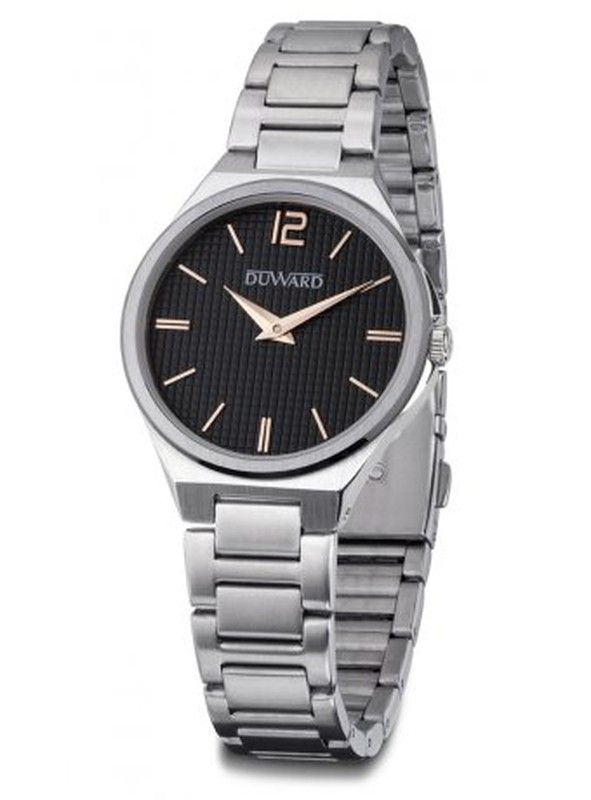 Reloj de la famosa marca Duward para mujer colección ELEGANCE Mai Solo-Ref. D25114.02, pieza única y exclusiva por su diseño tan fino y elegante y por su esfera negra super nítida con los números en color oro rosa.