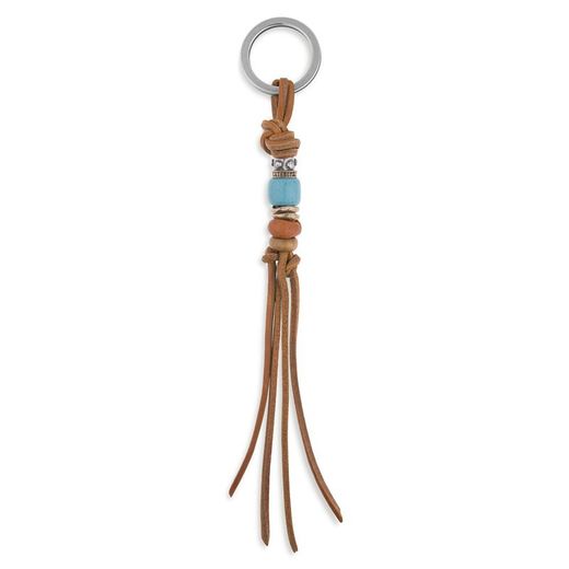 Referencia: WK004X : Llavero PLATADEPALO para mujer de cuero con argolla realizada en Bronce, motivos de plata, bronce, resina y madera de teca. Diseñado y hecho a mano artesanalmente por PLATADEPALO en España. PLATA DE PALO SIEMPRE ESTA DE MODA