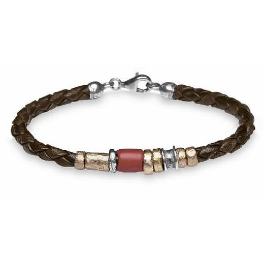 MB4G Pulsera Plata de Palo de plata, cuero, bronce y resina