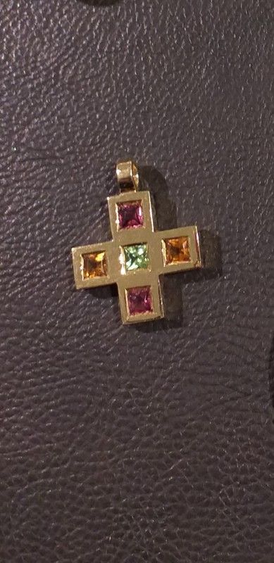 Descubre hermoso colgante cruz en oro 18K de piedras preciosas de varios colores. ... Nuestros estilos únicos son llamativos y elegantes, con una bonita presencia. Collares y colgantes de oro de ley, colgantes de piedra de color montados en oro 18K ... Envío gratis. Colgante cruz oro con piedra natural... Está adquiriendo una pieza única que tardará en fabricarse y ser entregada de 15 a 20 días laborables. Todos los materiales son nobles y de alta calidad, de esta manera nos aseguramos que tu joya puede durar toda la vida. Gracias por tu confianza. ¿Tienes dudas? Llámanos o mándanos un whatsapp al 600 80 12 04.