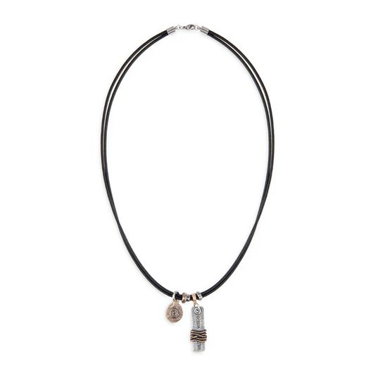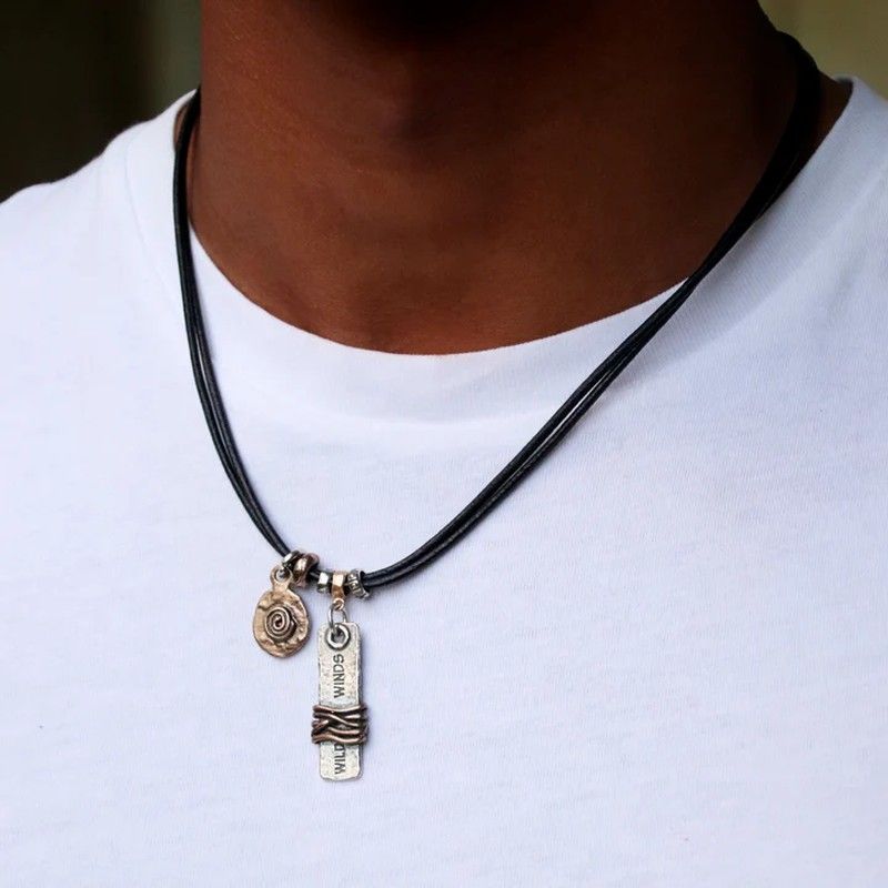 Eleva tu estilo con este collar Plata de Palo para hombre con diseño único, una pieza artesanal que fusiona la calidez del cuero genuino con el brillo atemporal de la plata y el encanto rústico del bronce. Cada colgante es una obra de arte, elaborado a mano, donde la placidez y la suavidad del cuero se entrelaza con entrepiezas de plata y bronce, creando un diseño único para ti que captura miradas y refleja tu personalidad.