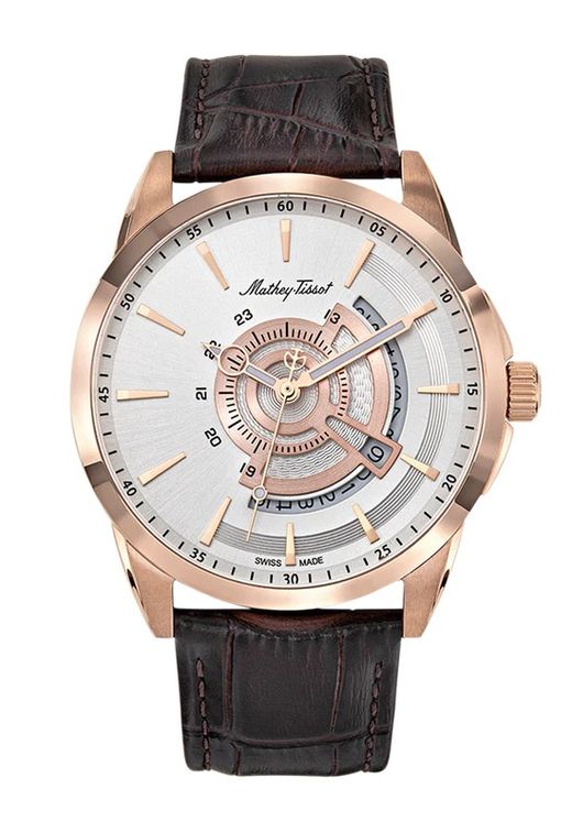 Reloj Mathey Tissot Swiss Made de hombre referencia Mondo H711PS caja acero inoxidable 316L con tratamiento IP oro, correa de piel, calendario, acuático 5ATM