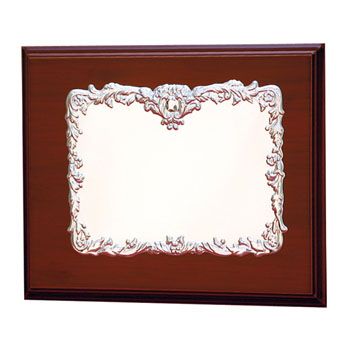 PL429 Placa conmemorativa en aluminio plateado acabada con madera de nogal fina y elegante
