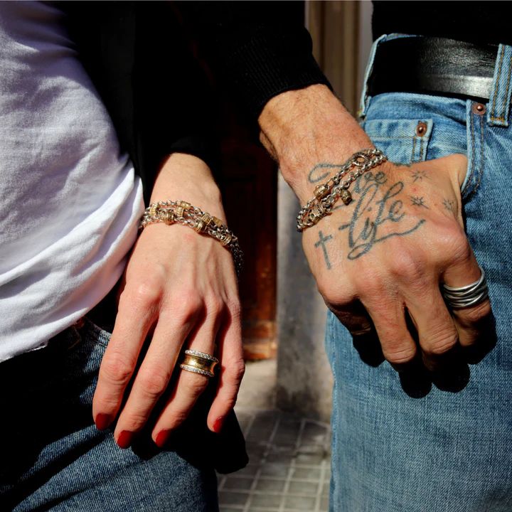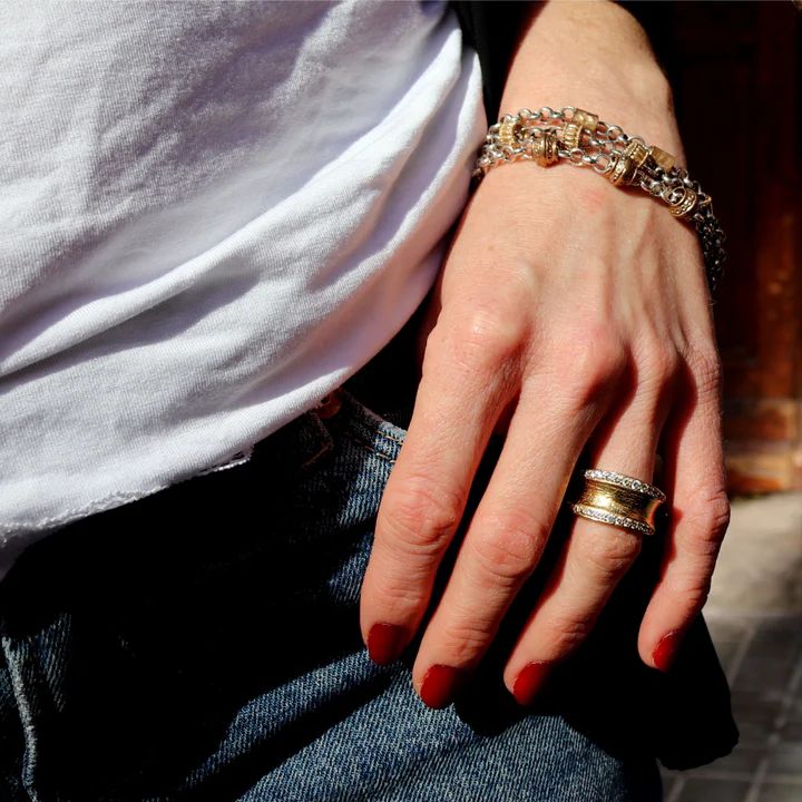 Una pulsera PLATA DE PALO para mujer que combina profundidad, brillo y estilo contemporáneo, pensada para mujeres que buscan una joya única con personalidad y carácter. La Pulsera Mujer Zafir con Plata 925 y bronce es una pieza artesanal hecha a mano en España por PLATA DE PALO, que combina plata de ley 925, bronce y una cadena de aleación de metales bañada en plata con un diseño elegante y moderno. El contraste entre los materiales aporta sofisticación y dinamismo, mientras que los acabados pulidos realzan la luminosidad y presencia de la pieza, creando un equilibrio perfecto entre tradición artesanal y estética actual. TALLAS: 17, 18, 19, 20, 21, 22 y 23 cm.