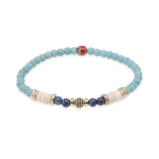 Esta nueva pulsera PLATA DE PALO para mujer es una declaración de estilo y un símbolo de calidad y artesanía. Cada bola de turquesa reconstituida y lapislázuli ha sido cuidadosamente seleccionada y pulida para resaltar su brillo intenso y natural con sus tonos vibrantes. El contraste entre el azul profundo del lapislázuli, el exuberante y pletórico tono turquesa crea una armonía visual incomparable que complementará cualquier vestuario, desde lo casual hasta lo más elegante. Diseñada hecha a mano artesanalmente por PLATA DE PALO en España. Tallas : 18, 19, 20 cm.