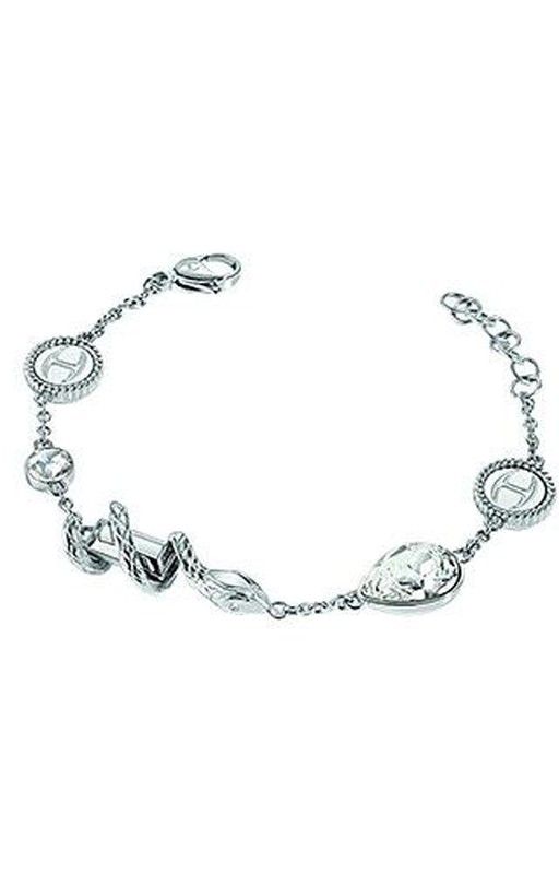 Pulsera de Just Cavalli intercalando varios motivos, lleva una moneda en cada extremo con el logo grabado encima, le sigue una circonita circular y otra en forma de lágrima, finalmente en la parte central una serpiente muy pequeña y discreta, todo esto realizado en acero inoxidable brillante y pulido. Talla : ajustable de 17 cm hasta 20 cm. Just Cavalli Just Cavalli