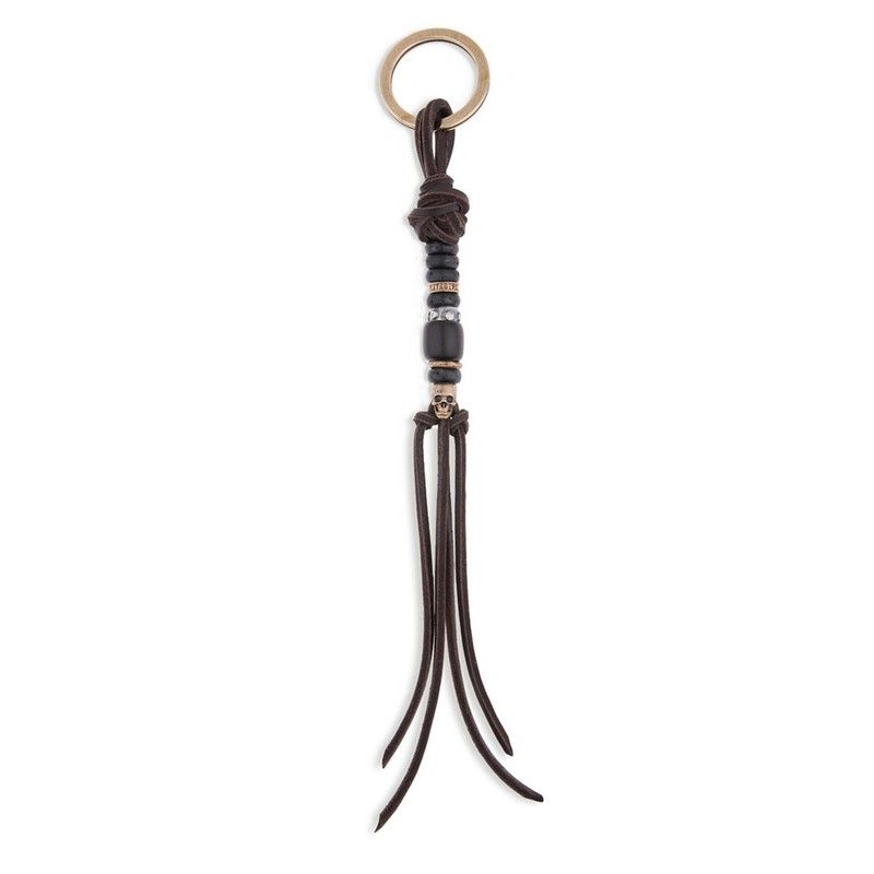 Llavero PLATADEPALO Skull Calavera de cuero con argolla realizado en Bronce. entrepiezas de Plata 925, bronce, resina y madera de teca. Joya diseñada por PLATADEPALO y hecha a mano artesanalmente en España.