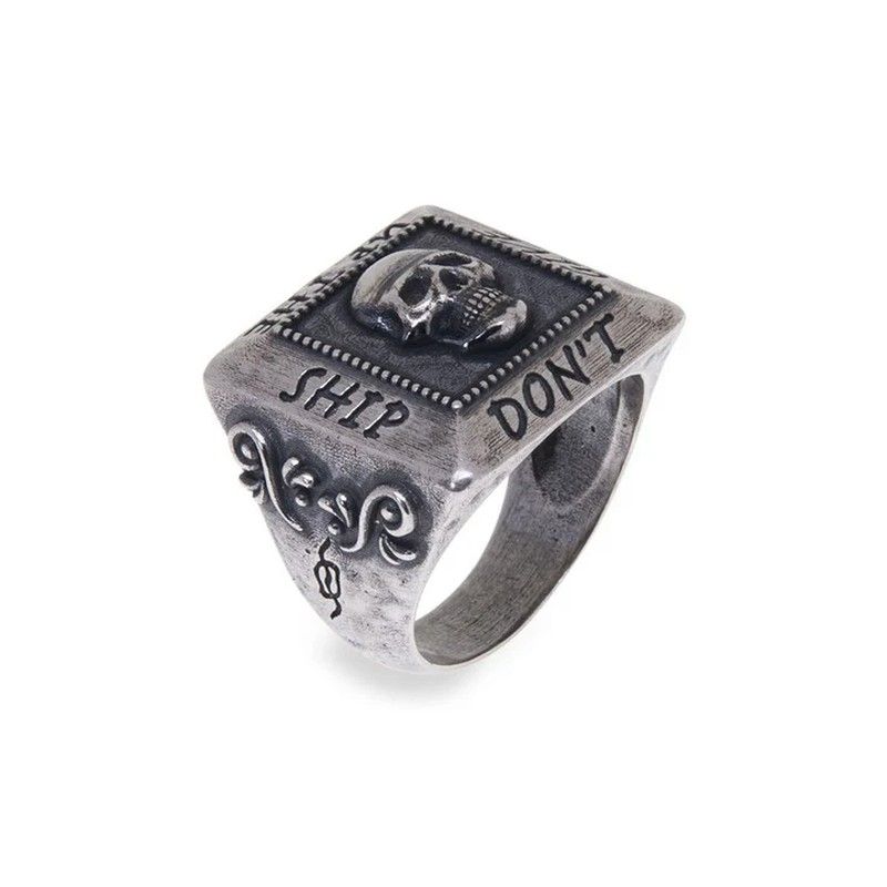 Anillo PLATA DE PALO unisex elaborado en plata 925 con la inscripción " DON ´T GIVE UP THE SHIP " ( NO ABANDONES EL BARCO ) y logo identificativo de la marca. Diseñado y hecho a mano artesanalmente por PLATADEPALO en España. Esta pieza se realiza de forma artesanal para cada cliente. PLATA 925: todas nuestras joyas están elaboradas a mano en Plata de Ley 925. ¿Qué quiere decir 925? Significa que el 92,5% es plata y un 7,5% es cobre, porque la plata pura es muy blanda y necesitamos ponerle un poco de cobre para que se endurezca y se pueda trabajar.