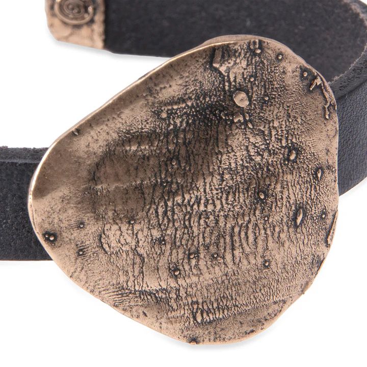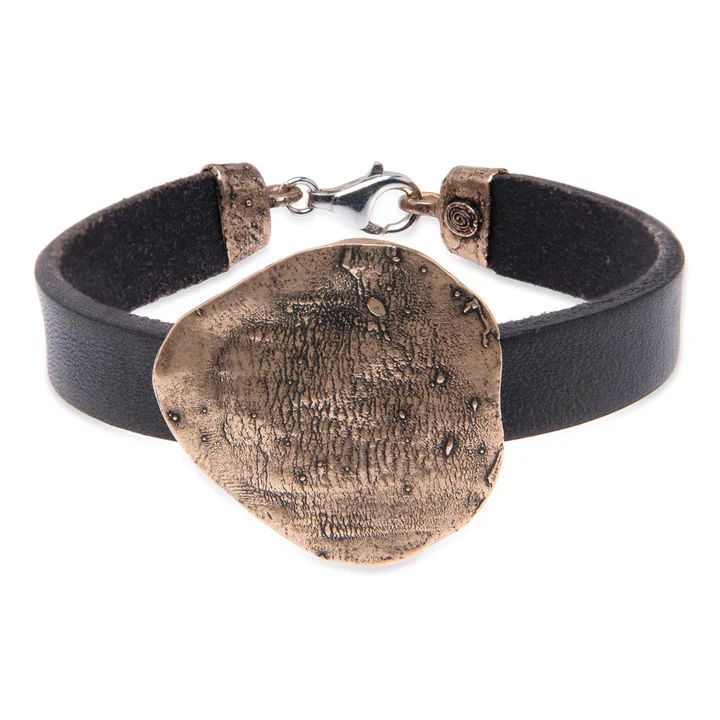 Pulsera PLATA DE PALO moderna y decorativa para mujer modelo Zenchi de cuero negro con centro de bronce y cierre mosquetón en plata de ley. La pulsera Zenchi es una declaración de equilibrio y carácter, inspirada en la claridad interior y la elegancia decorativa, combina la calidez del bronce con la sobriedad del cuero negro para crear una pieza que transmite fuerza serena y sólida. Su diseño minimalista y atemporal la convierte en un complemento versátil, ideal para mujeres que valoran la belleza con significado. Es una joya que acompaña con discreción y presencia, como un gesto silencioso de sabiduría y estilo.