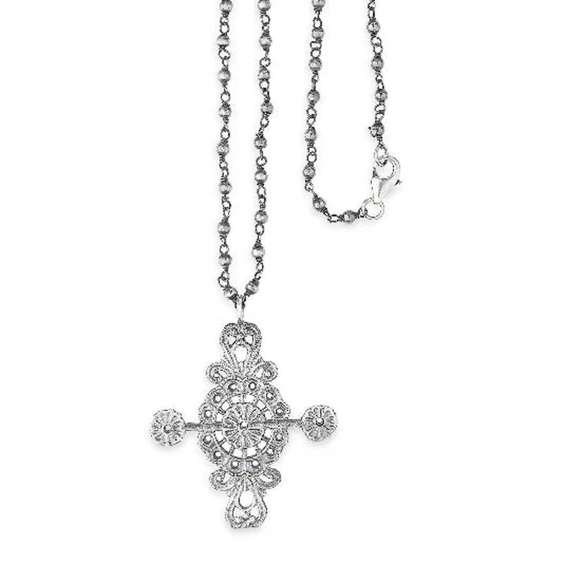 WN238X Collar Castana PLATA DE PALO cadena chapada en plata y cruz en plata de ley 925