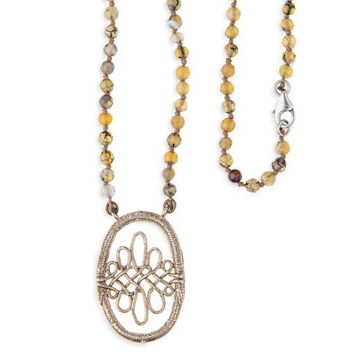 WN241X Collar Espiri Plata de Palo mujer con pirita y colgante oval de bronce pieza ideal para lucir a diario