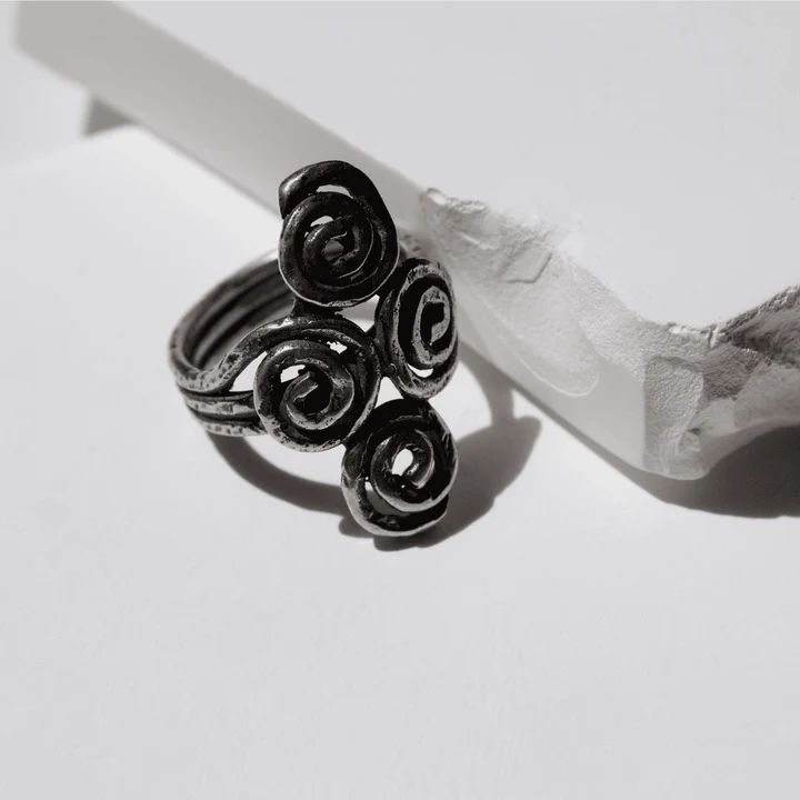 Anillo Plata de Palo para mujer modelo Yugen elaborado a mano en plata de 1ª ley con diseño de cuatro espirales redondeados entrelazadas. El anillo Plata de Palo colección Yugen es la expresión de una belleza que trasciende lo visible, un concepto japonés que evoca lo misterioso, lo profundo y lo eterno. Las cuatro espirales entrelazadas simbolizan el fluir armonioso de la vida, la conexión entre caminos y la continuidad de todo lo que existe. La plata 925 aporta pureza y elegancia atemporal, convirtiendo esta pieza en una joya para lucir en cualquier momento del día.